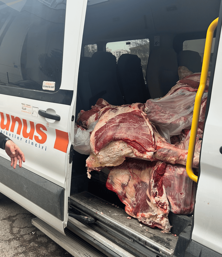 Ankara'nın Çankaya ilçesinde faaliyet gösteren Yunus marketler tarafından etler 06 BFG 629 plakalı müşteri aracıyla böyle taşınıyor. Kamu sağlığını alenen tehdit eden bu görüntülerle ilgili denetim yapılması gerekiyor.