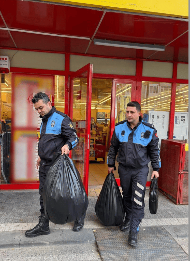 Zabıta görevlileri yüzlerce son tüketim tarihi geçmiş ürünü çöp poşetleriyle böyle topladı ve imha etmek üzere el konulduğunu açıkladı.