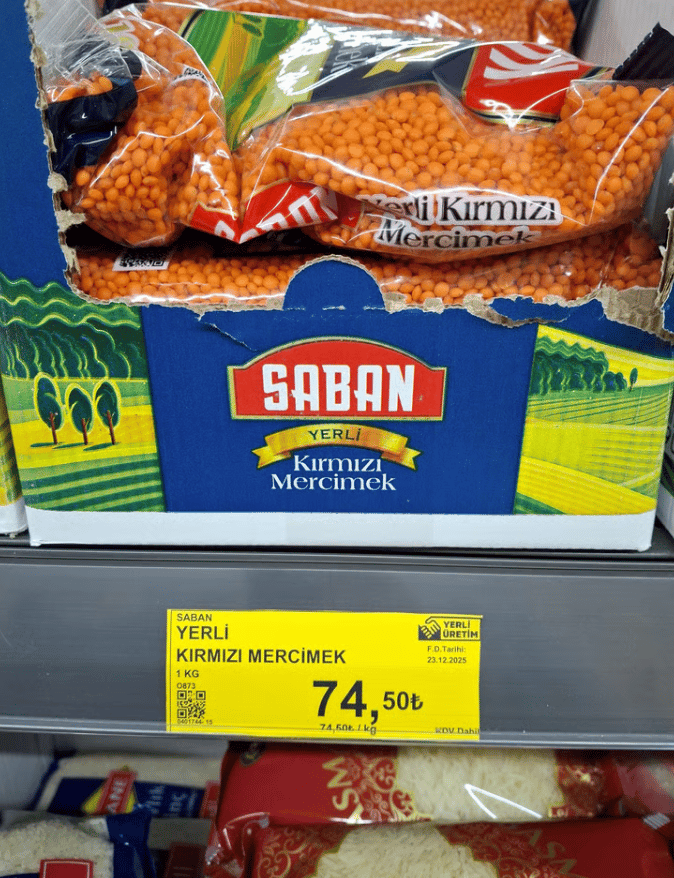 Kanada'dan ithal edilen kırmızı mercimek 40₺'ye satılırken, yerli kırmızı mercimek 74,5₺'ye satışa sunuluyor.