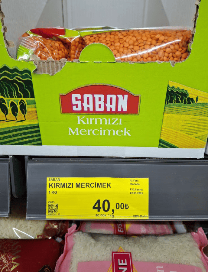 Bim mağazalarında satışa sunulan yerli mercimek ile Kanada'dan ithal mercimek arasındaki fiyat farkı neredeyse iki katı bulmuş.