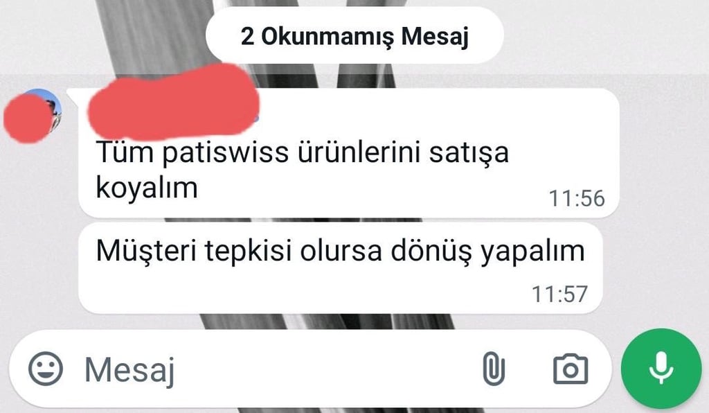 Firma yaptığı açıklamada; “Bu topraklarda doğmuş, büyümüş, gıda güvenliği konusunda Türkiye’ye öncülük etmiş, Türk insanına sağlıklı, kaliteli ürünler sunma misyonundan bir gün bile uzaklaşmamış ve tüm bunların ötesinde, 600’ü kadın olmak üzere 800’den fazla çalışana istihdam sağlamaktan her daim gurur duymuş bir Türk markasıdır. Son birkaç aydır; yapılan hatalar, dilenen özürler, çıkarılan dersler, bunlara ilişkin atılan adımlar ve yapılan tüm duyurulara rağmen, Patiswiss markasına yönelik ithamların, çoğu zaman dozunu aşan eleştirilerin, bilgi yanlışlarına dayanan saldırıların hız kesmeden devam etmesinden büyük üzüntü duyuyoruz.” ifadelerine yer verdi.