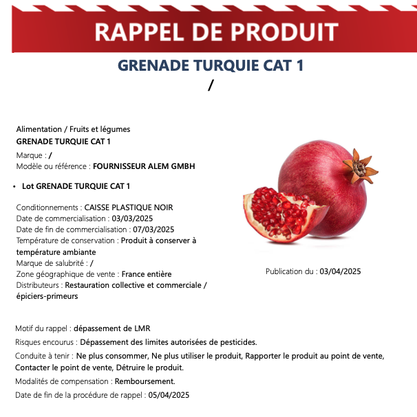Avrupa Birliği Gıda Uyarı Sistemi RASFF’ten bugün yapılan 2025.2517 numaralı duyuru kapsamında Türkiye’den ihraç edilen narlarda güvenli limitlerin üzerinde pestisit kullanımı tespit edildiği açıklandı. Türkiye’den Fransa’ya ihraç edilerek piyasaya arz edilen narlarda hem güvenli limitlerin üzerinde hem de yasaklı pestisit kullanımı tespit edildiği duyuruldu. Narlarda tam 8 farklı pestisit tespit edilirken, tespit edilen bazı pestisitlerin ülkemizde tam 8 yıldır yasaklı olduğu anlaşılıyor.