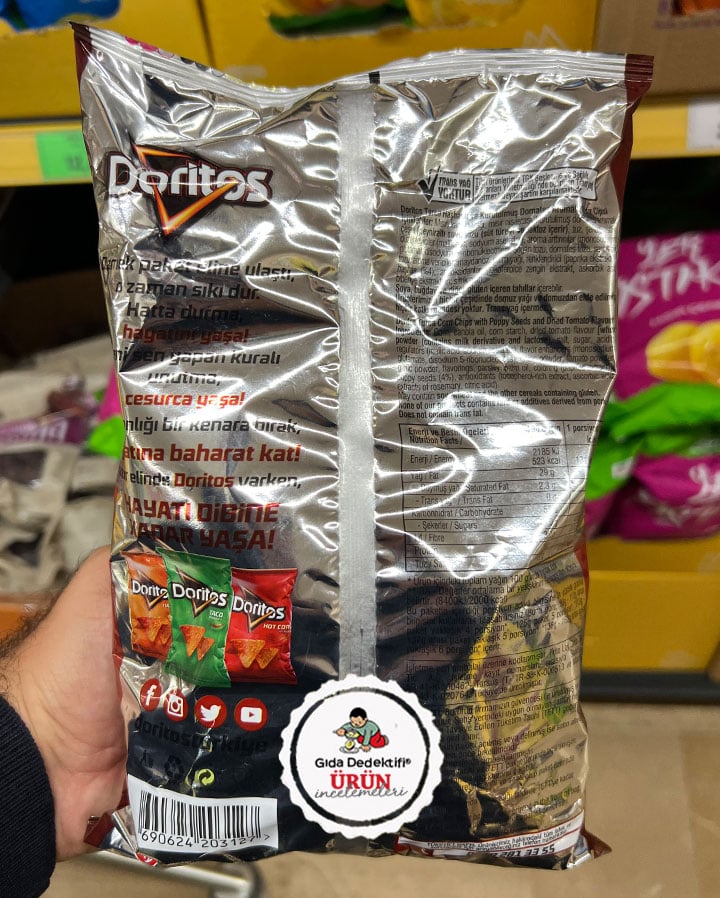 🔎Doritos Turca Haşhaşlı ve Kurutulmuş Domates Aromalı Mısır Cipsi Besin Değerleri