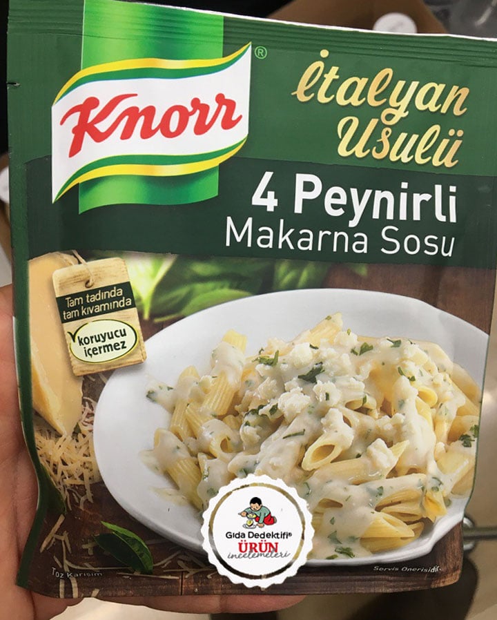 Marketlerde yaygın olarak satılan ve makarna tüketiminin yoğun olduğu ülkemizde tercih de edilen bir üründen bahsedeceğiz; Knorr İtalyan Usulü 4 Peynirli Makarna Sosu. Ürün Unilever firması tarafından Türkiye’de üretiliyor ve 50 gr.’lık ambalajlarda satılıyor.