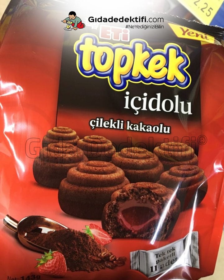 Eti tarafından uzun yıllardır üretilen Topkek ürününün yeni çeşidi; Eti Topkek İçidolu Çilekli Kakaolu’yu inceliyoruz. Ürün 13 gr.’lık 11 adet kekin bulunduğu paketlerde satılıyor. Ürünün ayrıca Limonlu Haşhaşlı bir çeşidi daha bulunuyor.