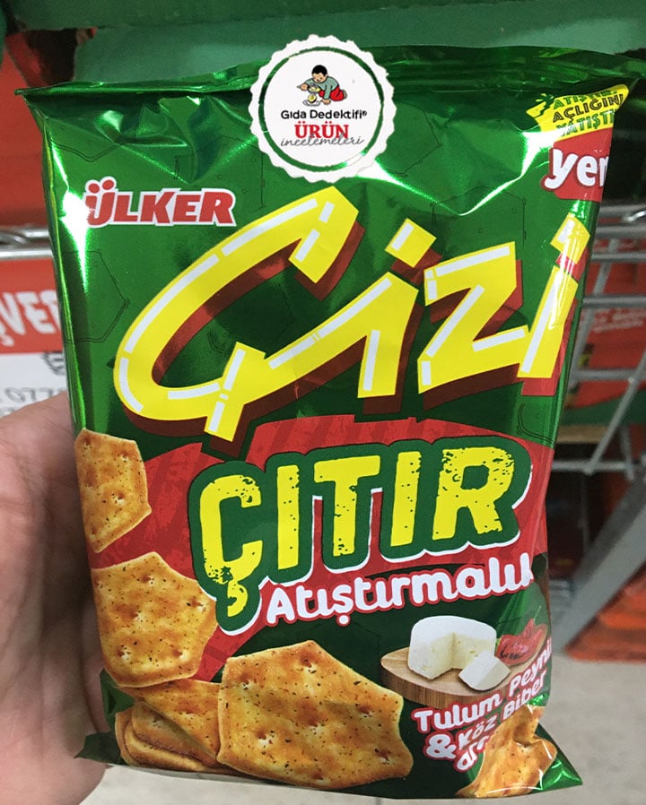 Ülker Çizi markasıyla market raflarında yer almaya başlayan Çıtır atıştırmalık ürününü inceleyeceğiz. Ürün Çizi ürünlerinin alışılmış halinin dışında daha küçük boyutlarda üretilmiş şekilde 40 gr’lık ambalajlarda satışa sunuluyor. Ürünün tulum peynirli ambalajı üzerinde tulum peyniri ve köz biber görselleri yer alırken, tüketiciye bunların kendisi değil aroma vericileri koklatılıyor. Öyle ki, ürün %0,2 yani binde 2 oranında peynir tozu içerirken, üründe bundan çok daha yüksek oranda yapay aroma vericiler bulunuyor.