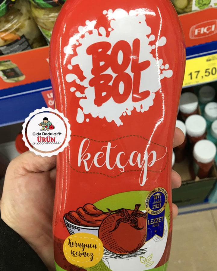 Ambalajında 2021 yılında bir enstitü tarafından ücret karşılığında verilen bir lezzet ödülü logosuyla dikkat çeken ve uzun yıllardır Bim mağazalarında farklı fason üreticiler tarafından ürettirilen Bol Bol Ketçap ürününü inceleyeceğiz. Fason üretim yaptırdığını tüketiciden bilerek gizleyen ve sadece işletme kodu yazarak “mevzuatın gereğini yerine getiren” firmaların yanı sıra, marketlerin private label olarak ürettikleri firma bilgisini tüketiciye mevzuat gereği açıkça beyan ettiğini söyleyelim. Bu haliyle İstanbul’daki bir mağazada tespit ettiğimiz ürünün üreticisinin ise KHC Turkey Gıda Sanayi olduğu etikette açıkça görüyoruz. Ürün 1 kg’lık paketlerde satışa sunulurken ambalajın ön yüzünde “Koruyucu içermez” ibaresi yer alıyor.