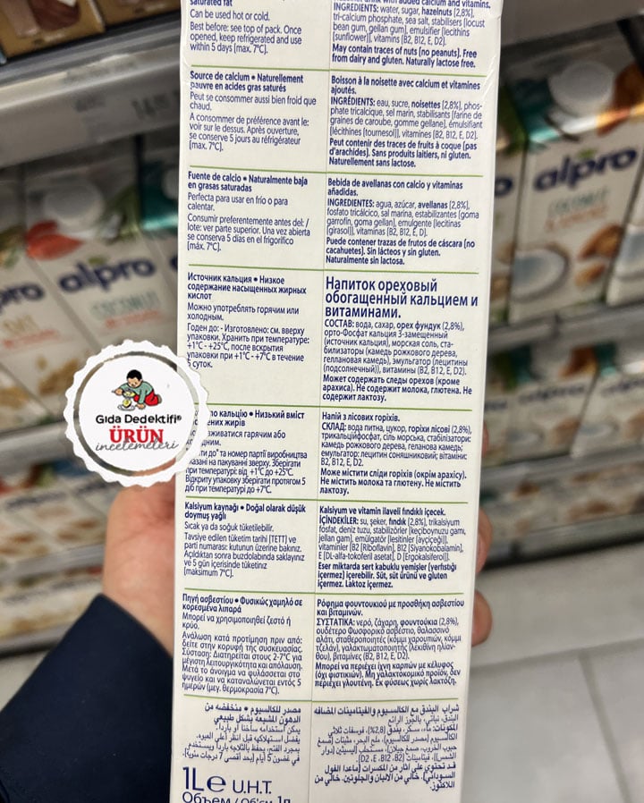 Fransa’da üretilerek ülkemize ithal edilen ve üzerinde fındık görselleriyle dikkat çeken Alpro Hazelnut Fındıklı İçecek ürününü inceliyoruz. Ürün tamamen bitkisel kaynaklı ve vegan sertifikalı bir ürün olup, içeriğinde hayvansal bazlı süt veya süt ürünü içermemektedir. Ürün süt ürünlerine oranla çok daha yüksek fiyatlarla 1 litrelik ambalajlarda satışa sunuluyor.